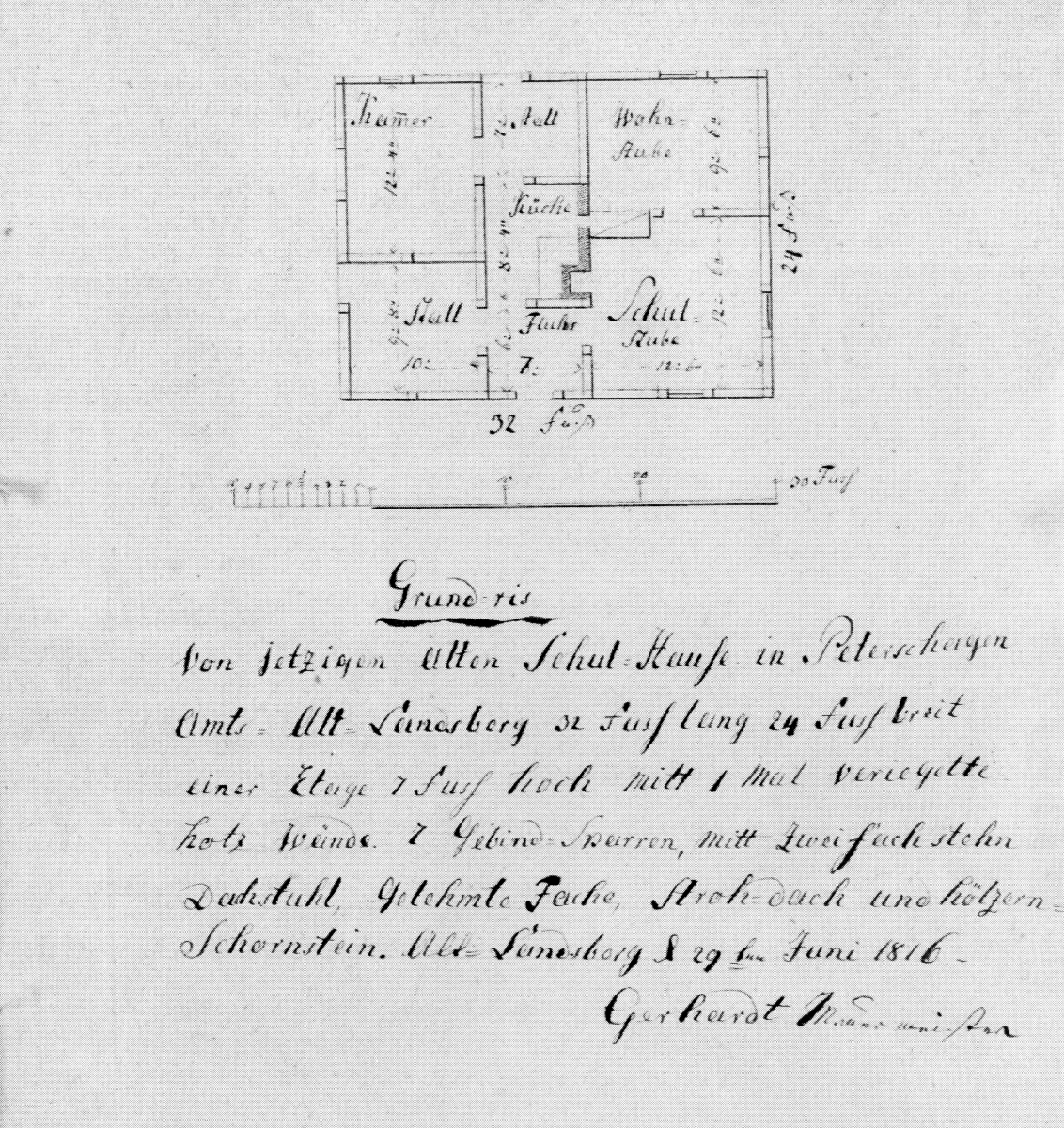 archivierten Grundriss des Schulhauses von 1816 zutrifft.